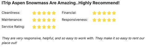 Here are just a few testimonials from owners currently working with us! If you are considering iTrip Aspen Snowmass as your partner in managing your vacation rental home we are happy to share contact information for some of our current homeowners as a referral.